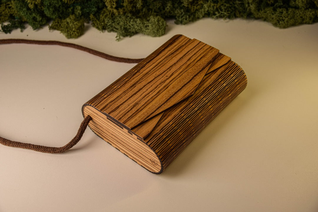 Ogni borsa è unica ed irripetibile! Non esisterà mai una venatura del legno uguale ad un'altra, rendendo così la vostra borsa un pezzo unico!