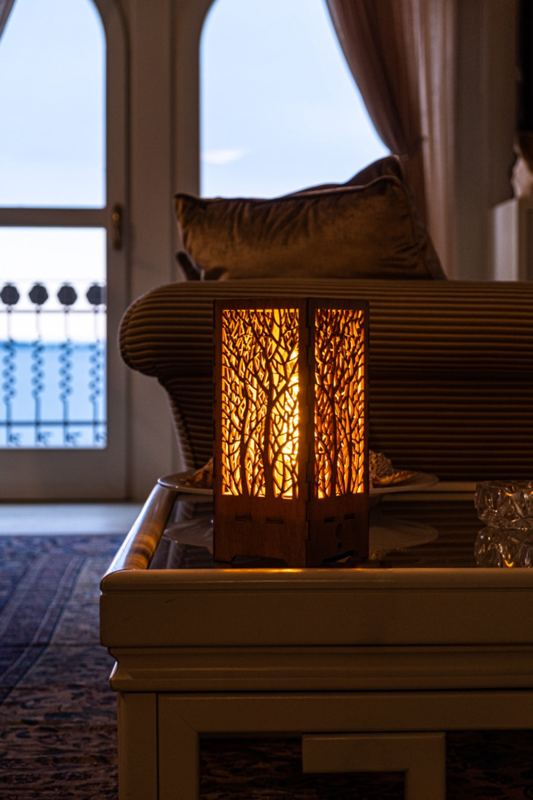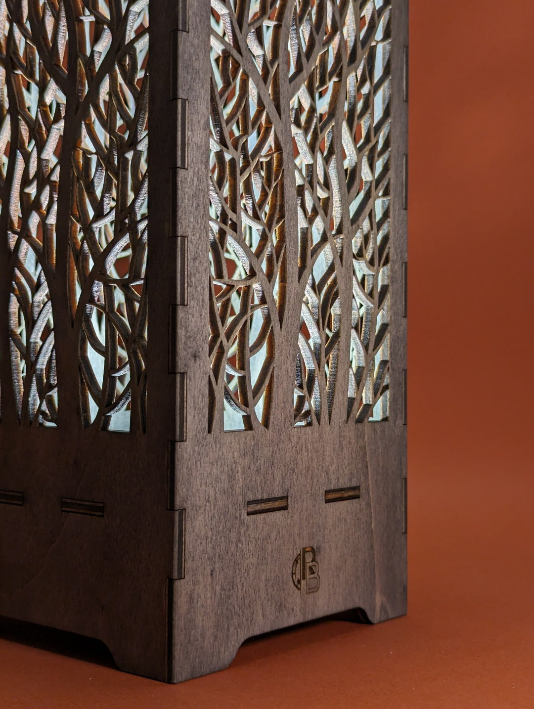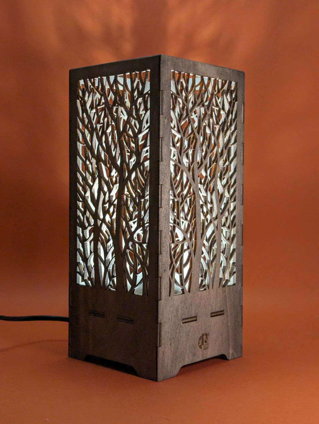 - Elegante lampada in legno compensato di pioppo e verniciata con tintura all'acqua