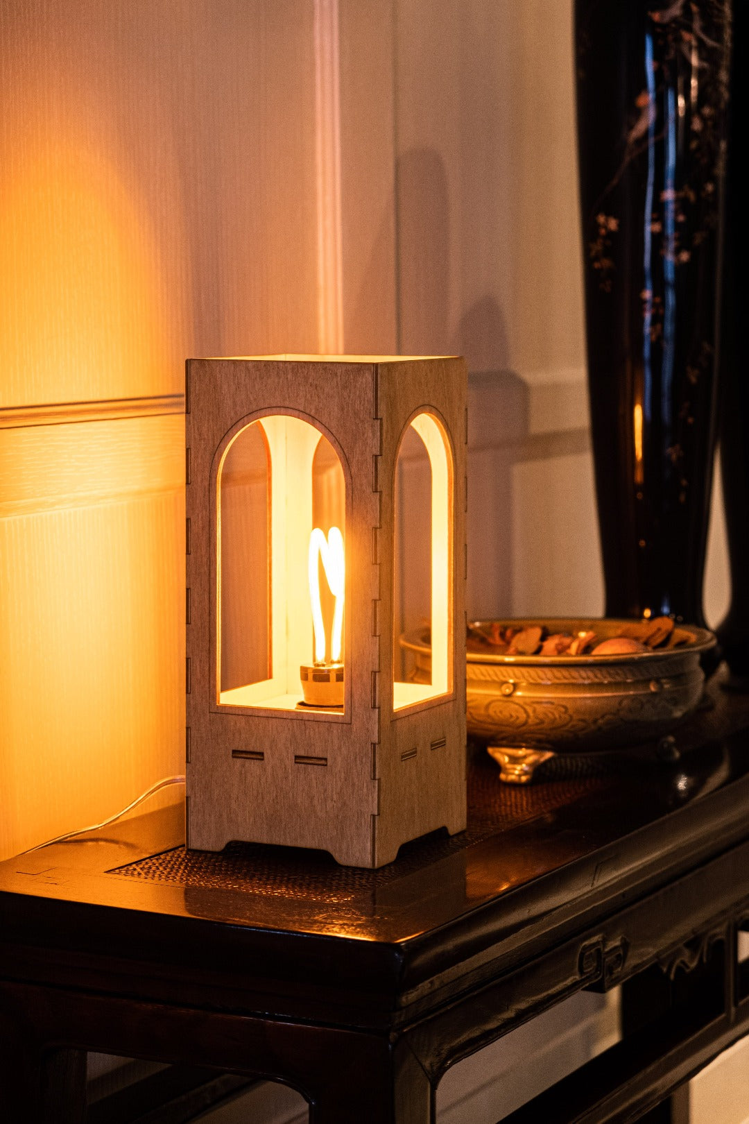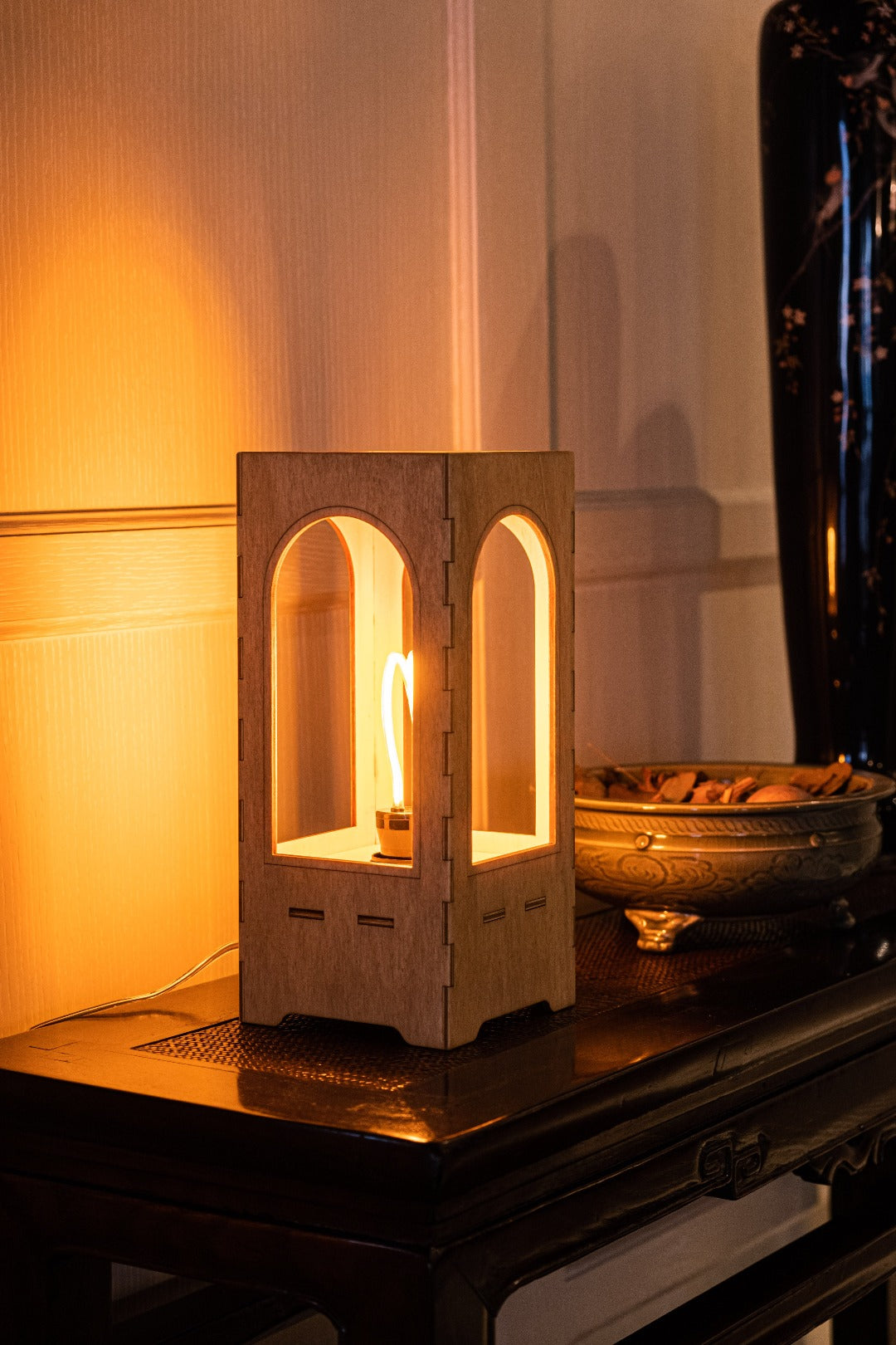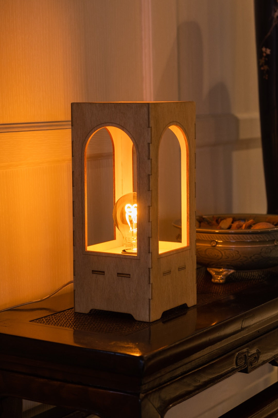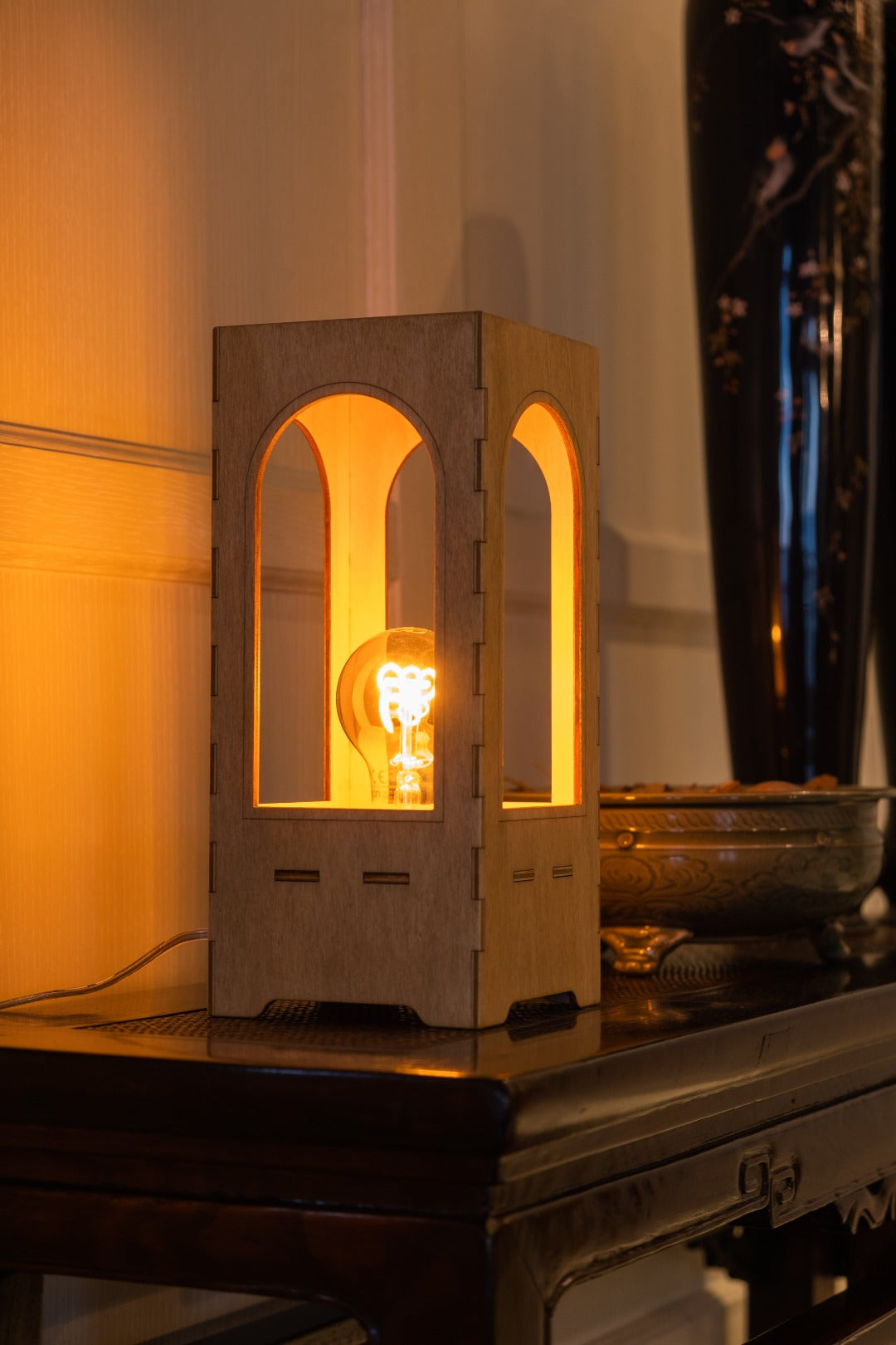 - Elegante lampada in legno compensato di pioppo e verniciata con tintura all'acqua, soluzione con innesto per lampada e27 ( lampada non inclusa)
