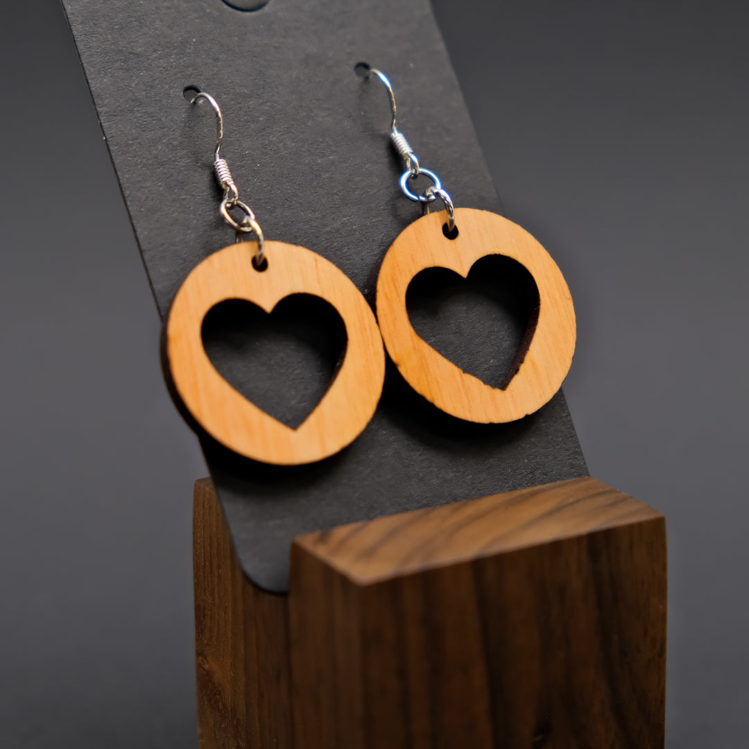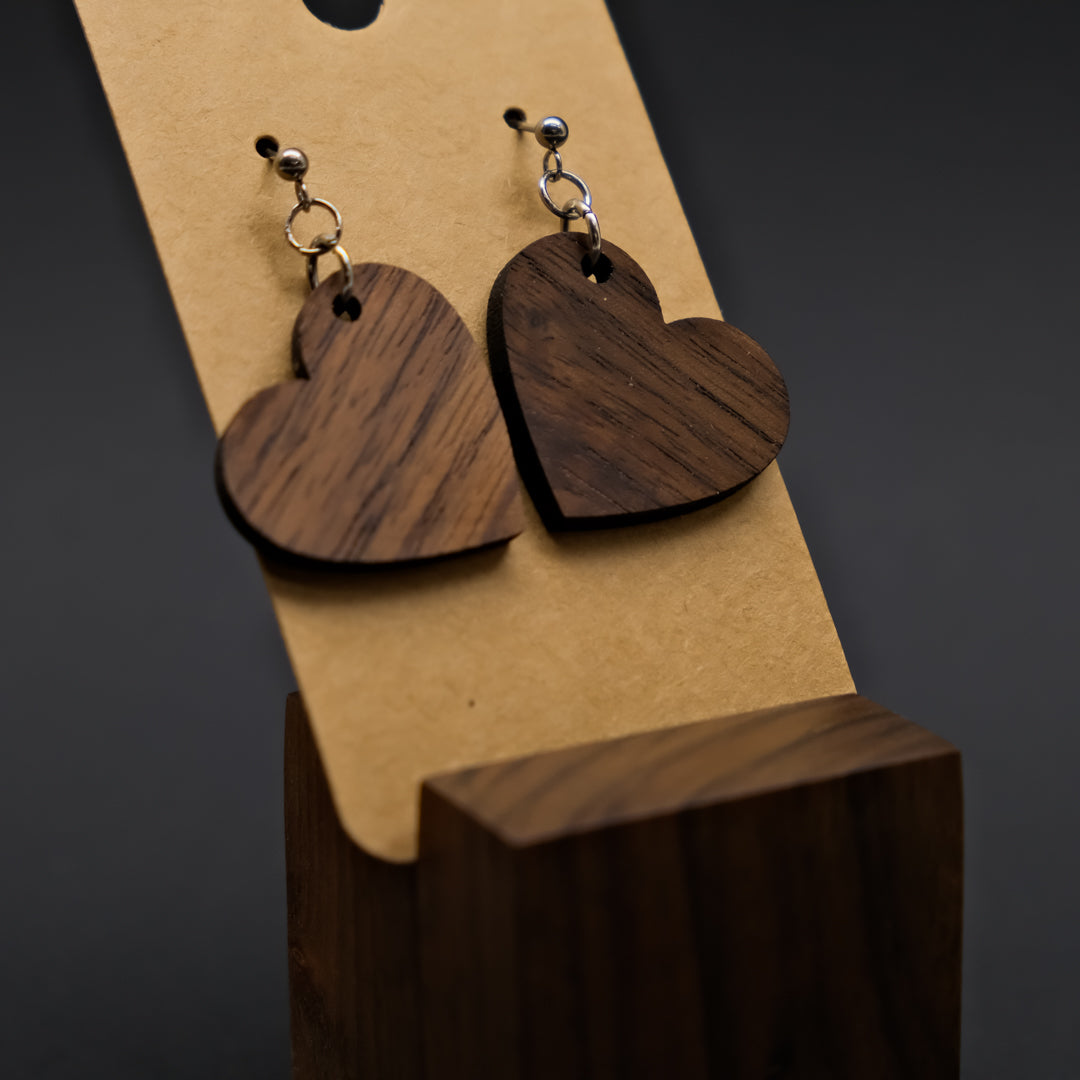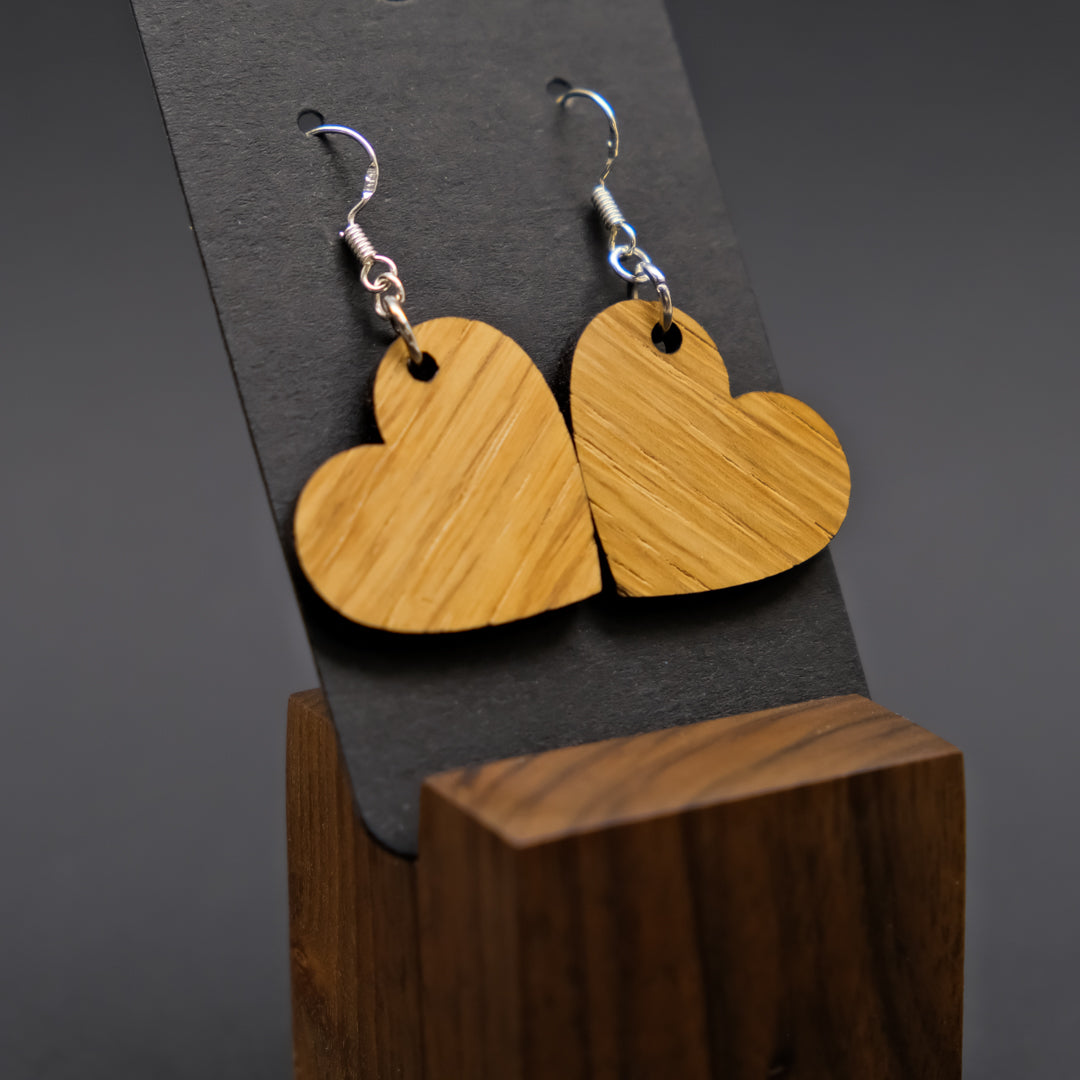 - Orecchini realizzati in vari legni tra cui Rovere, Noce e Ciliegio
