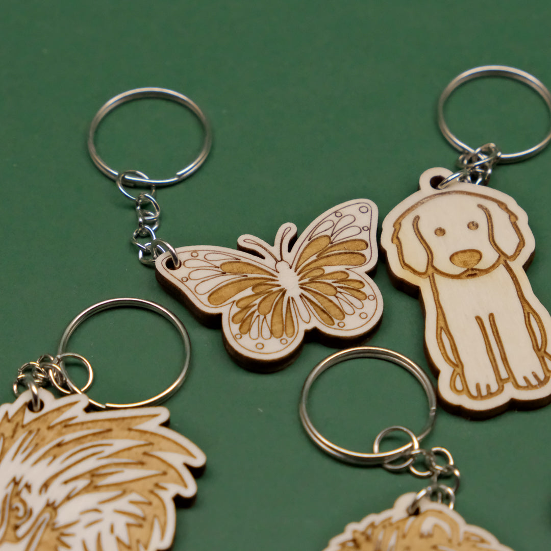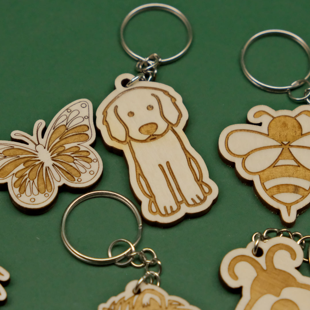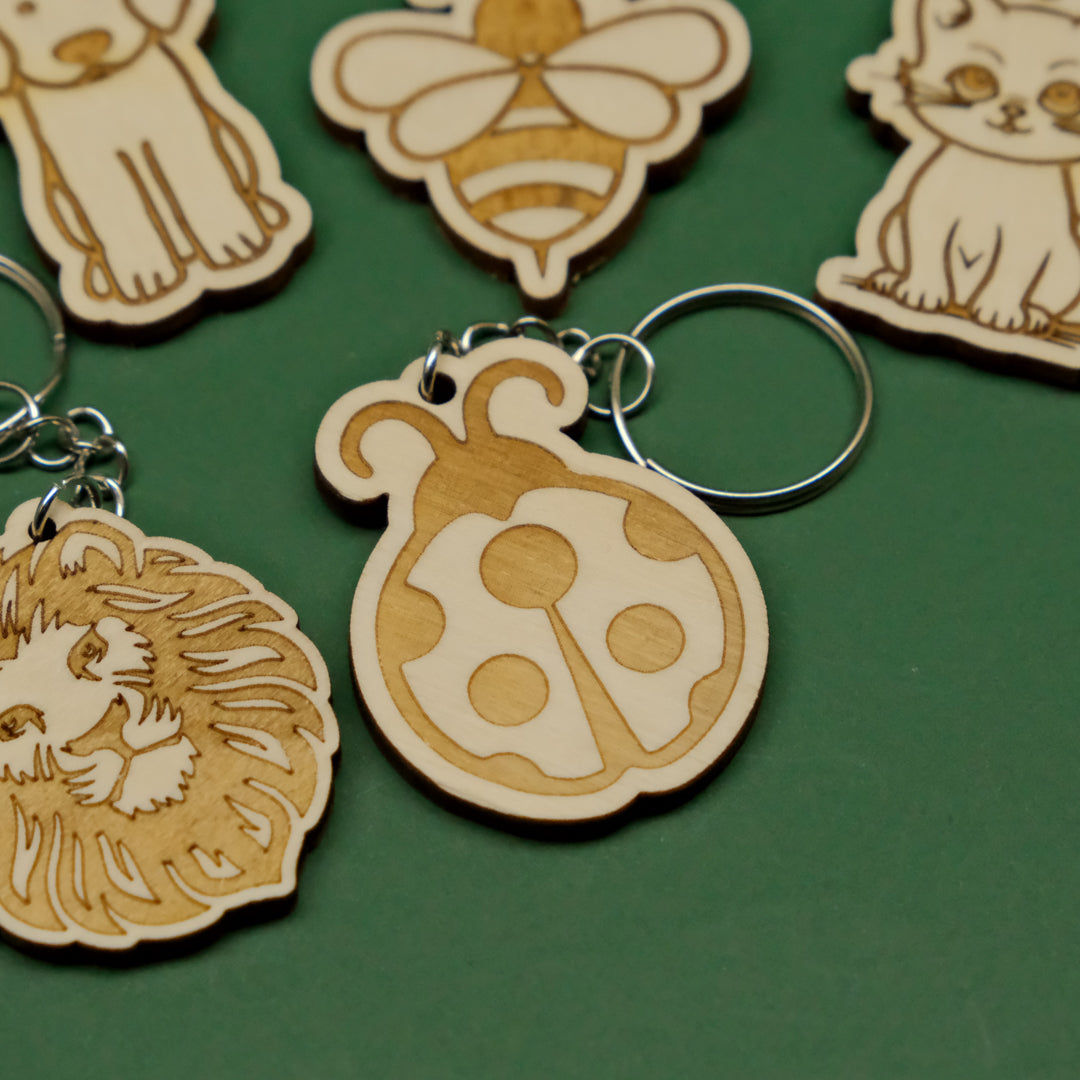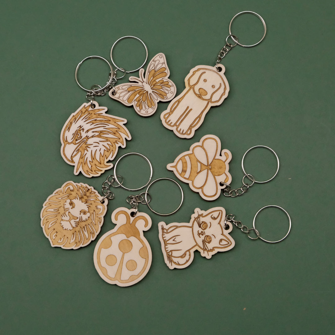 - Portachiavi in legno multistrato di pioppo da 4mm con animali incisi