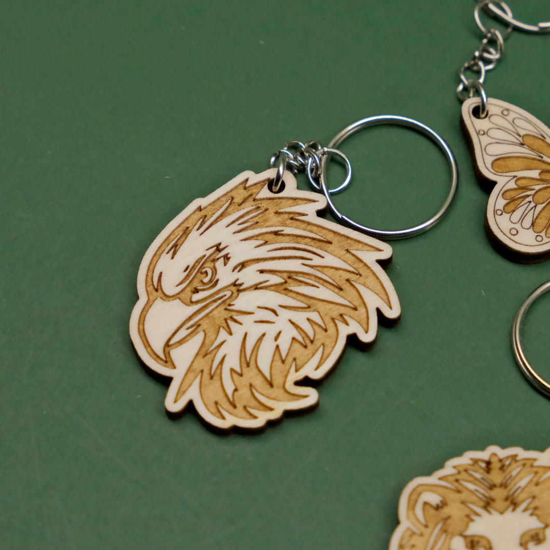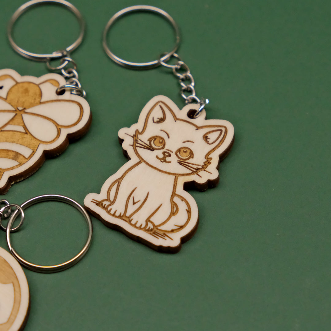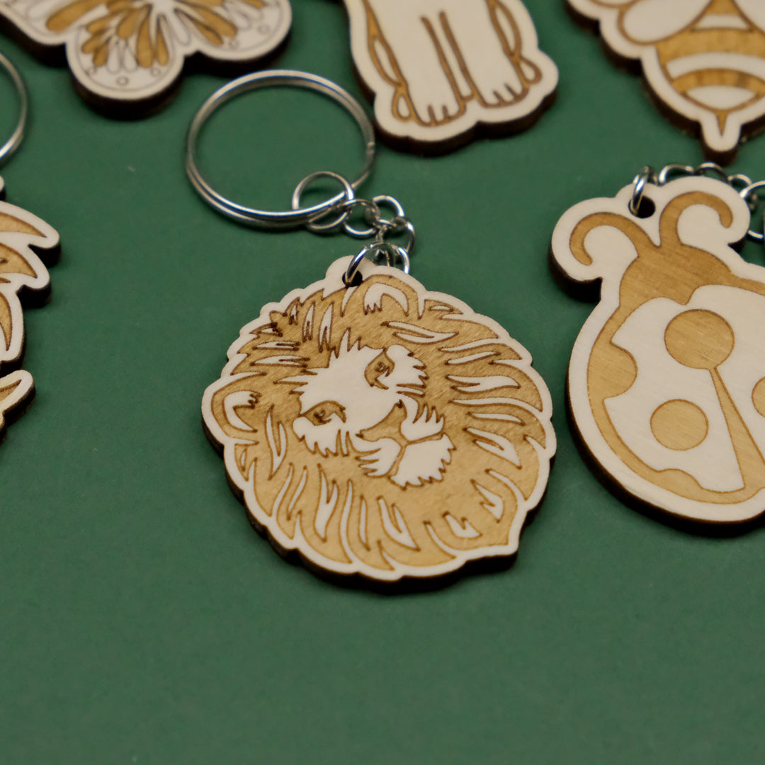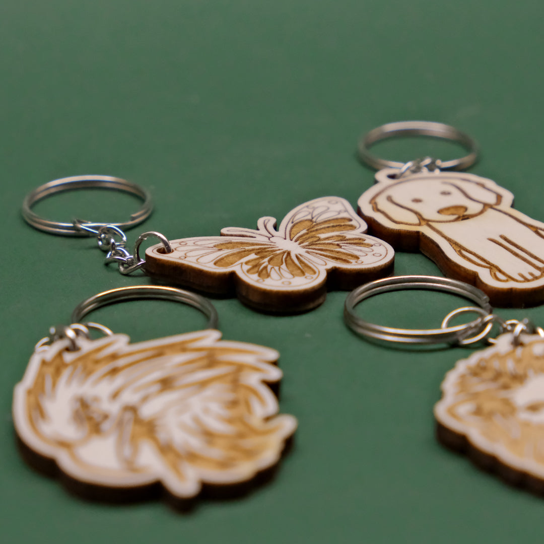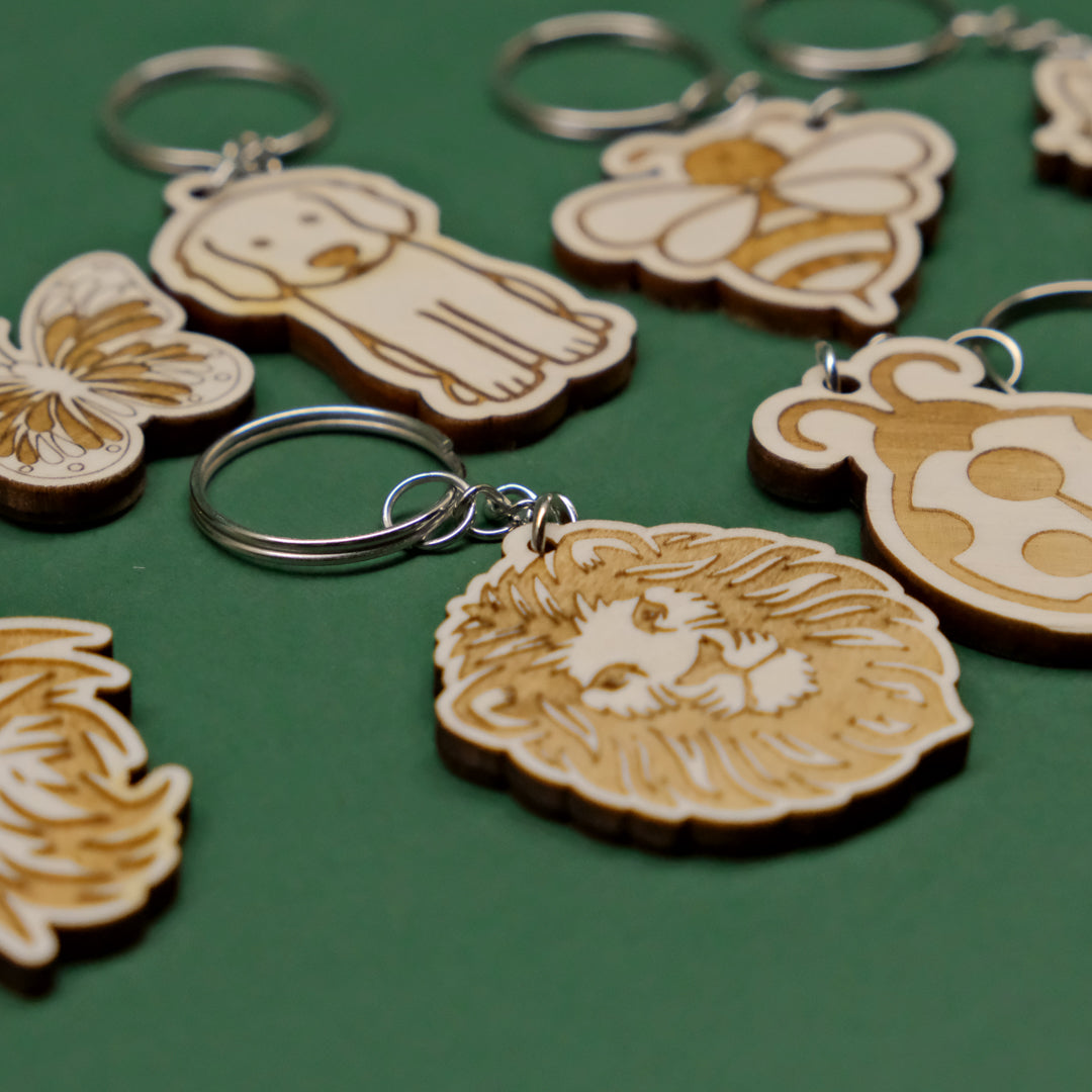 - Portachiavi in legno multistrato di pioppo da 4mm con animali incisi