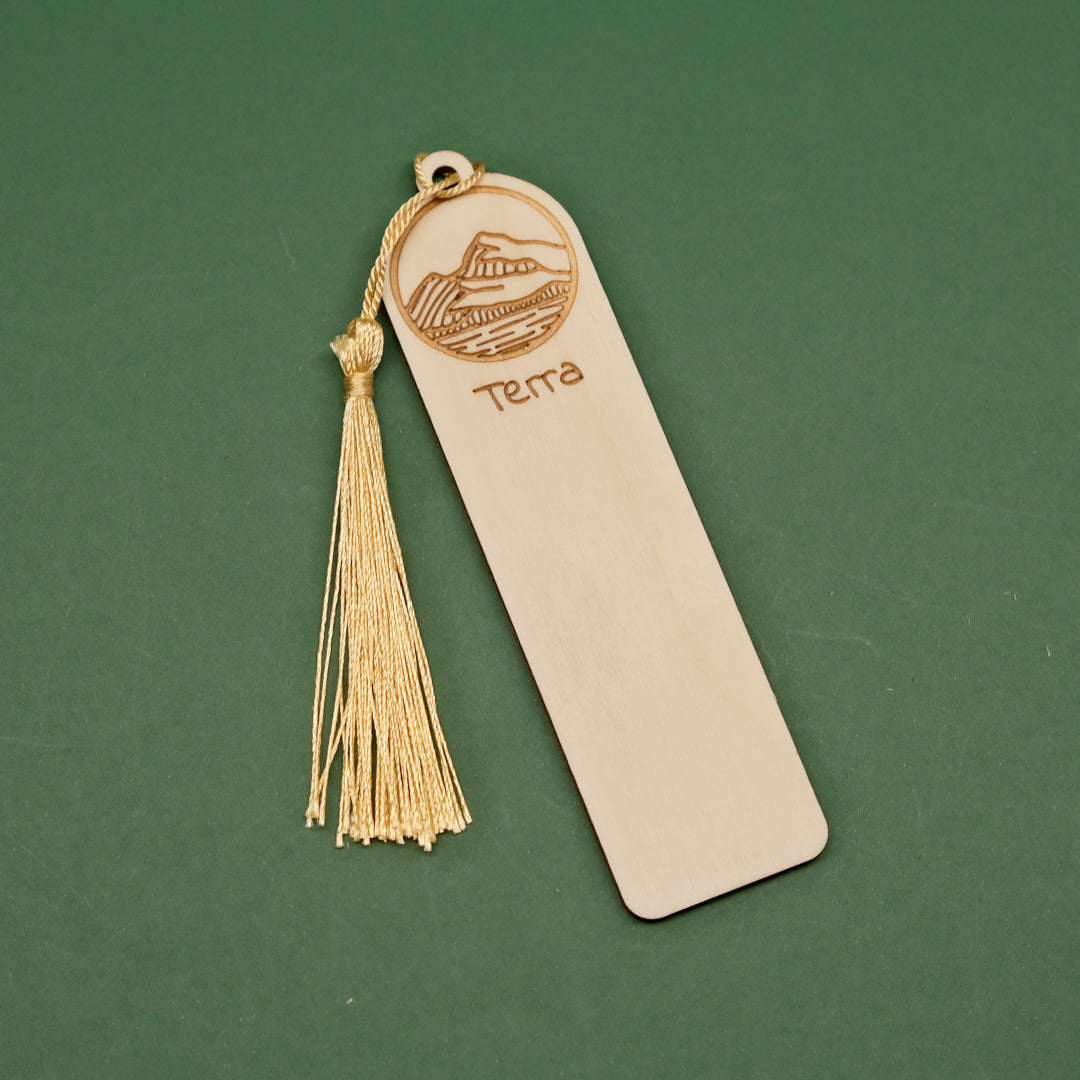 - Segnalibro realizzato in legno compensato di pioppo da 3mm.